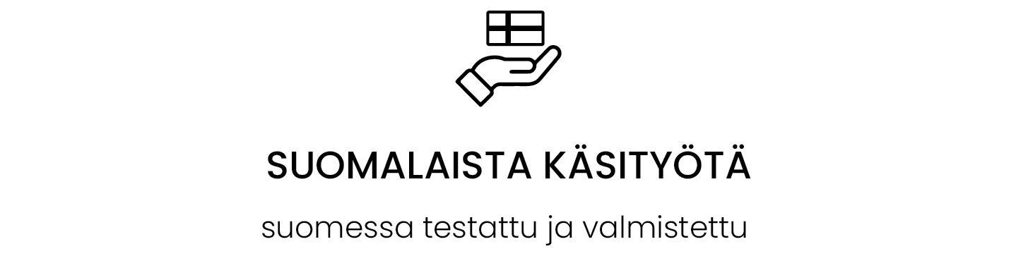 "Käsintehty tarkoin valituista raaka-aineista tavoitteena mahdollisimman laadukas ja puhtaasti palava luksustason tuoksukynttilä."